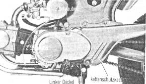bei 12V DAX oder Kettenschutz bei 6V DAX demontieren und