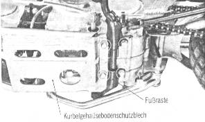 Dann ggf. Motorschutz und oder Kurbelgehäuseschutzstangen entfernen.