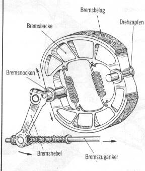 des Handbrems- oder Fußbremshebels wird der Bremsnocken der Vorderrad